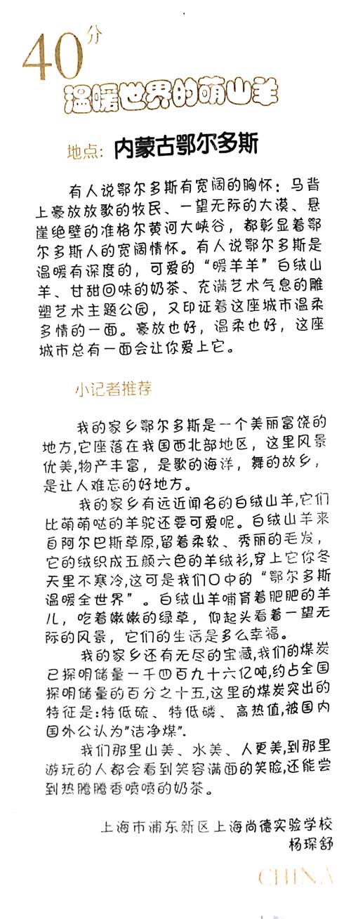 《我的家乡鄂尔多斯》发表在《中国学生健康报》2015年第1期