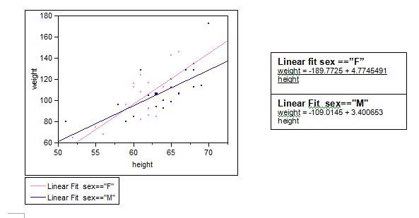 According to our linear model, we expect that for every extra inch increase in height, there will be about 3.4 pounds increase in weight for boys, and 4.77 pounds increase in weight for girls, on average.